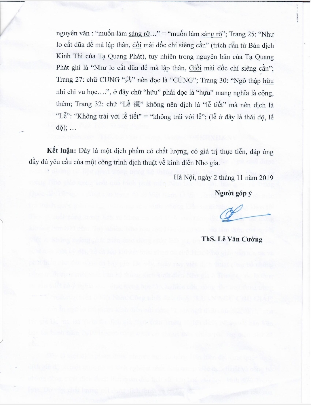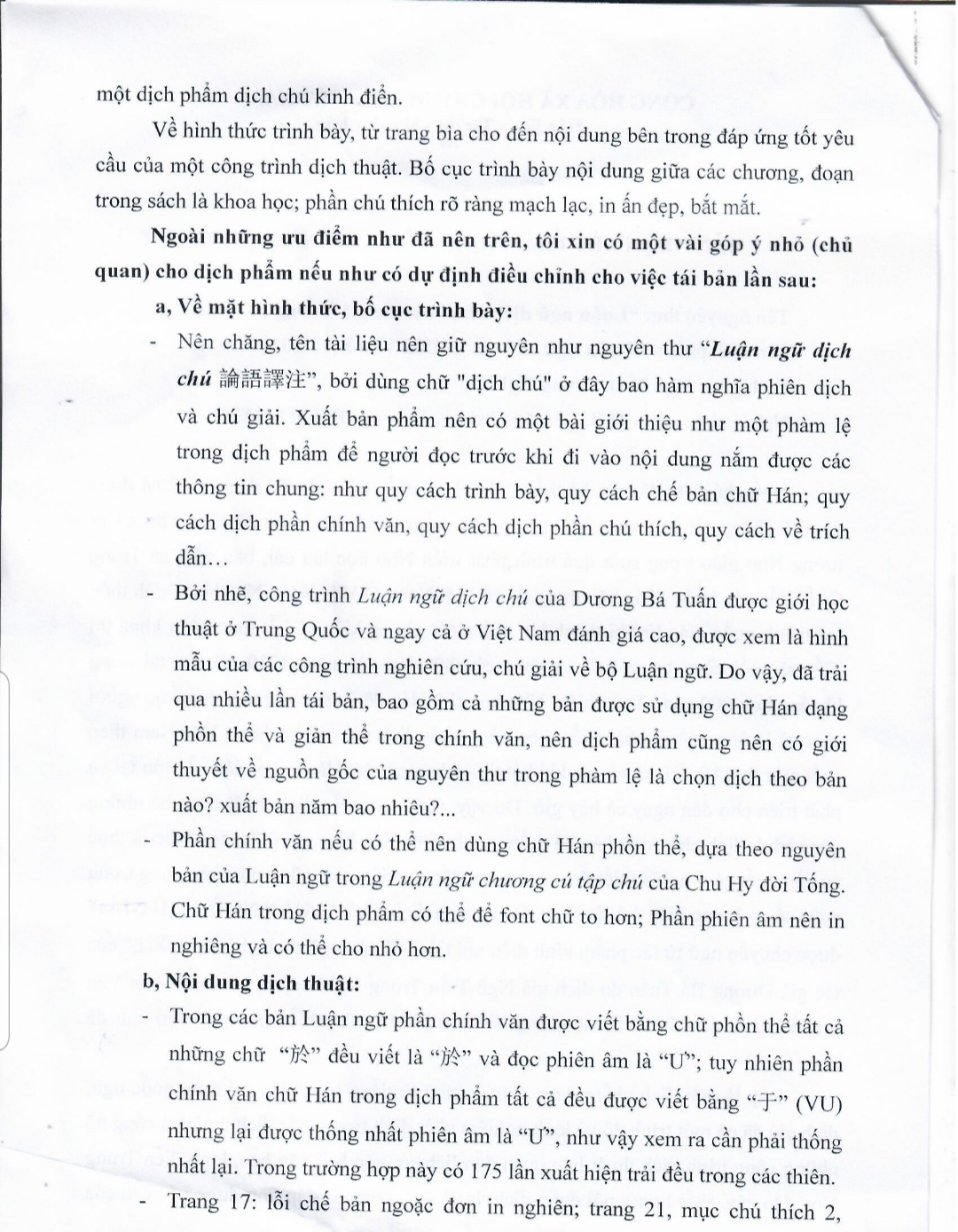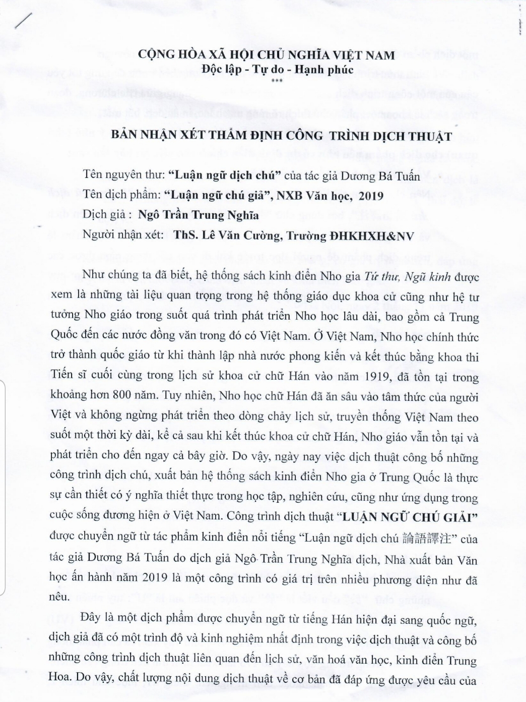 Bản nhận xét thẩm định công trình dịch thuật "Luận ngữ chú giải"