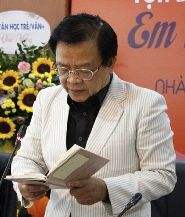Mở đầu buổi tọa đàm, nhà thơ Trương Đăng Dung đọc 3 bài thơ trong tập Em là nơi anh tị nạn mà ông tâm đắc nhất.