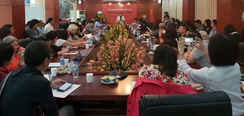 Dù thời tiết không đẹp, rất nhiều nhà văn, nhà thơ, nhà phê bình tại Hà Nội và các tỉnh vẫn có mặt tại buổi tọa đàm giới thiệu thơ Trương Đăng Dung. Ảnh: Trần Mai Anh